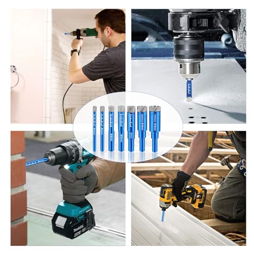 Ampie Applicazioni: Perfette per una facile perforazione quando si utilizzano fori su vetro, marmo, piastrelle, vasi in fibra di vetro, ardesia mable, granito (trapano per granito), ceramica (trapano per pietra) ceramica, piastrelle per pavimenti duri, cinghie di mattoni di clinker, lastre di pietra, piastrelle dure. Funziona con tutti i trapani elettrici e le smerigliatrici angolari.