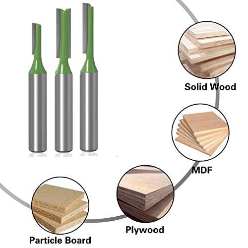 Punte Dritte da Fresa,Fresa Diritta A Flauto Singolo,Flauto Punta Dritta Fresa,Gambo Fresa a Taglienti Diritti,Router Bit Set A Doppia Scanalatura,Set di Frese Dritte, per Lavorazione Strumento,3 Pcs