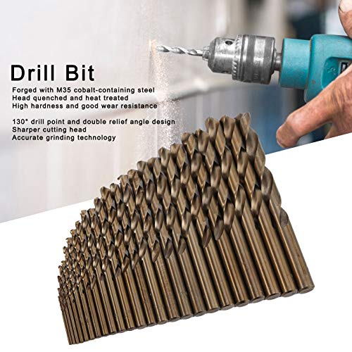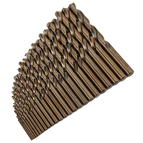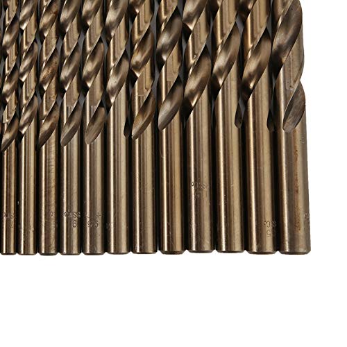 AFFILATA E DUREVOLE: punta di trapano a 130° e design a doppio angolo di rilievo, la testa di taglio è più affilata, la tecnologia di rettifica della punta da trapano Twist in acciaio al cobalto è accurata, robusta e durevole