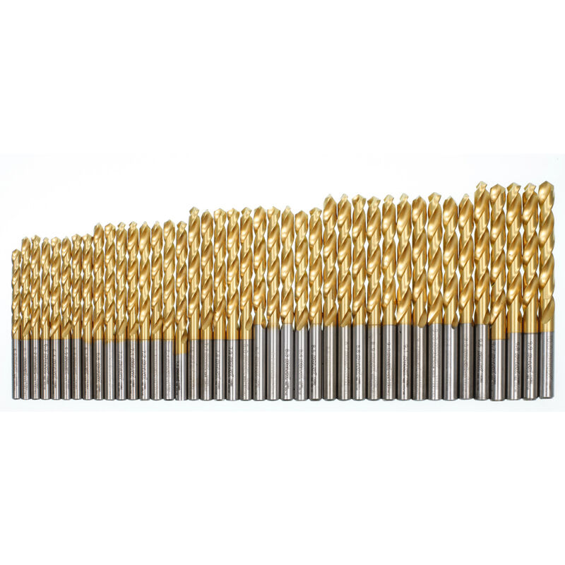 Composto da punte elicoidali a norma DIN 338. Nocciolo senza conicità. Affilatura di precisione dei taglienti. Profilo rettificato: concentricità radiale elevata e affilatura precisa dei taglienti, punte per la produzione in serie. Con punta di forma C a partire dalla Dim. 2,4 mm. Dati tecnici GG(G) m/min idoneo Olio idoneo Acciaio < 900 N/mm² m/min idoneo Acciaio < 1400 N/mm² m/min limitatamente adatto Alluminio (a truciolo corto) m/min limitatamente adatto CuZn m/min limitatamente adatto Acciaio < 500 N/mm² m/min idoneo Alluminio > 10% Si m/min limitatamente adatto Acciaio < 1100 N/mm² m/min limitatamente adatto a umido max. idoneo INOX < 900 N/mm² m/min limitatamente adatto INOX > 900 N/mm² m/min limitatamente adatto Ti > 850 N/mm² m/min limitatamente adatto Acciaio < 750 N/mm² m/min idoneo Tolleranza ⌀ nominale h8 Angolo di affilatura Grad 118 Norma DIN 338 Rivestimento TiN Materiale da taglio HSS Modello N Angolo dell'elica Grad 35-40 Colore collarino senza In cassetta no