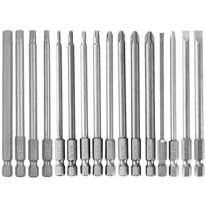 Descrizione Caratteristiche: - Questo set di testine è in acciaio di alta qualità S2. - Lavorazione accurata, ogni bordo può essere bloccato con precisione, nessun danno per la vite e la testa del cacciavite. - Forte magnetico, può succhiare le viti facilmente quando viene utilizzato. -Può essere utilizzato con un cacciavite elettrico manuale, un cacciavite, trapano, aria e altri strumenti. Specifiche: Materiale: acciaio S2 di alta qualità. Asta esagonale: 1/4. Lunghezza: 100 mm. Torx: T8, T10, T15, T20. Poco esagono di 4 pezzi: H3, H4, H5, H6. 4 punte a croce Phillips: Bit4.0 x PH2, Φ4.5 x PH2, Φ5.0 x PH2, 6.0 x PH2. Punte per cacciavite scanalate, 4 pezzi: SL3, SL4, SL5, SL6. Contenuto: 16 punte per cacciavite combinate.