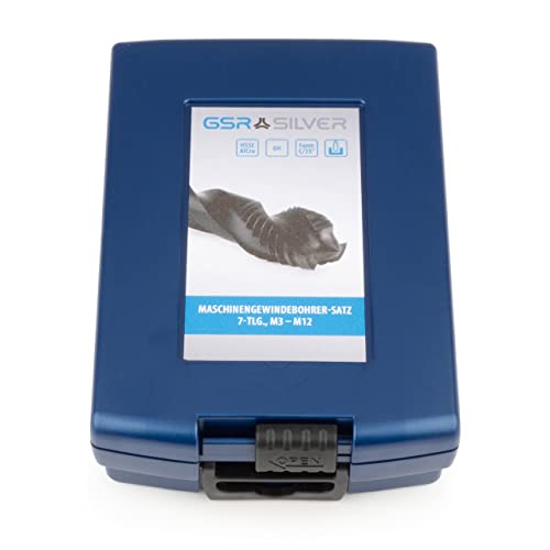 GSR Set di 7 punte per filettatura a macchina, HSSE-ALCrO DIN 2184-1 (DIN 371/376), forma C/35°, HSSE-ALCrO, metrico M3-M12, in cassetta stabile, set di filettature