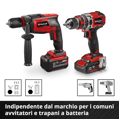Indipendente dalle marche - Per la massima flessibilità, l'albero E 6.3 della valigetta Einhell si adatta a tutti i mandrini e portapunte standard degli avvitatori e trapani a batteria disponibili in commercio.