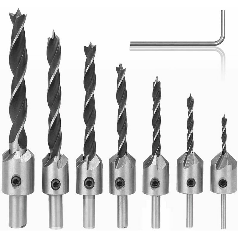 Descrivi Set di taglierine: include 7 taglierine in 7 diverse dimensioni (3 mm/4 mm/5 mm/6 mm/7 mm/8 mm/10 mm) con chiave esagonale. Ci sono numeri sulle punte per una facile identificazione e possono soddisfare le tue diverse esigenze. Materiale di alta qualità: le punte a testa svasata sono realizzate in acciaio ad alto tenore di carbonio con elevata durezza, eccellente forza di taglio e buona resistenza all'usura.< /p> Asportazione rapida del truciolo: il design a tre punti garantisce una foratura precisa e veloce senza spostamenti, scivolamenti e inclinazioni;