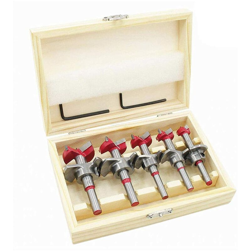 5 diversi set di punte - : utilizzare punte da 15 mm, 20 mm, 25 mm, 30 mm e 35 mm per un taglio netto. Adatto per molte occasioni, stampaggio su prodotti in legno, prodotti in plastica, legno e compensato. (Si prega di non forare il metallo) [Progettazione del limitatore di profondità]: è possibile installare un limitatore di profondità sul tubo di perforazione per evitare di perforare troppo in profondità e la profondità è limitata tra 15 mm e 45 mm. Puoi anche rimuovere le soste di profondità illimitato. Guidato dal bordo circolare, può perforare tutti gli archi di un cerchio in qualsiasi direzione. La testa adotta un design ad arco, che può rimuovere efficacemente i detriti e operare in modo efficiente. [Carburo cementato]: realizzato in acciaio legato al titanio, durevole. l La punta del trapano è impilata, inclinata e forata su tutti i tipi di legno, facilitando la perforazione di fori per cerniere, fori cilindrici, fori filettati per scrivanie computer e fissaggi per mobili