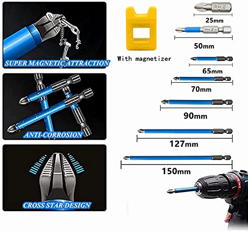 Set di punte magnetiche antiscivolo per trapano da 7 pezzi, con magnetizzatore, punte magnetiche Ph2, punte per cacciavite a croce antiscivolo, set singolo (1 set)
