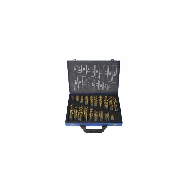 Set in valigetta di metallo con 170 punte in HSS-Co rettificate con legante al cobalto 5% in lega di acciaio inox titanio acciaio indurito e ghisa. Misure - 10 pz (mm): 1 - 15 - 2 - 25 - 3 - 35 - 4 - 45 - 5- 55 - 6 - 65 - 7 - 75 - 8 - 5 pz (mm): 85 - 9 - 95 - 10