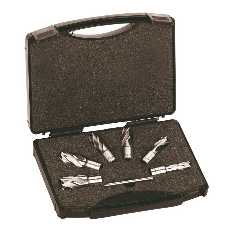 Dettagli: 2 taglienti affilati per dente. HSS a parete spessa Gambo standard Weldon 19 mm Profondità di foratura 30 e 50 mm Caratteristiche: Contenuto: Ø: 14-16-18-20-22-24 mm Espulsore