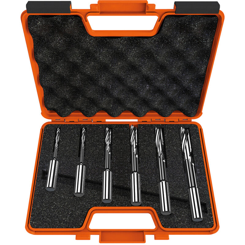SET 6 PUNTE MORTASA/ELICOIDALI HSS S=16 D=6-8-10-12-14-16 SX Il nostro classico set da 6 punte in acciaio ad alta resistenza con attacco Ø16mm o Ø13mm è lo strumento ideale per mortasare, l'unico capace di darvi un valido aiuto in ogni occasione.