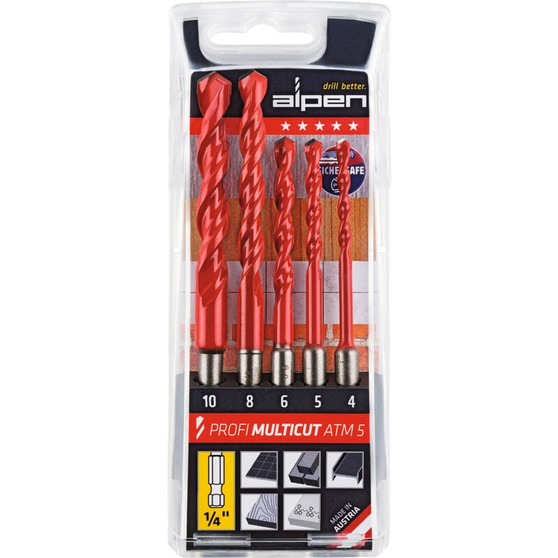 10 mm Nota: Attenzione − ammesso solo l'impiego a rotazione (senza percussione)! Dati tecnici Materiale da taglio HM Codolo esagonale per bit E 6,3 Impiego con/senza percussione nessuna foratura a percussione Tipo di prodotto Punte universali Numero taglienti Z 2 ⌀ Punta, mm 4 - 10 Numero di punte 5