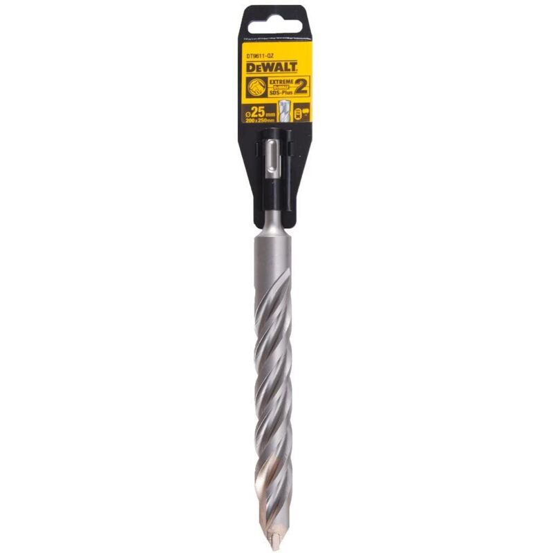 Punte elicoidali DeWalt SDS Plus Con placca al carburo di tungsteno di qualità superiore, per forare granito, porfido, calcestruzzo, etc. DIN 8039, ISO 5468 (euronorm) attacco SDS Plus DT9611 - 25x250 mm. - Elica 200 mm.