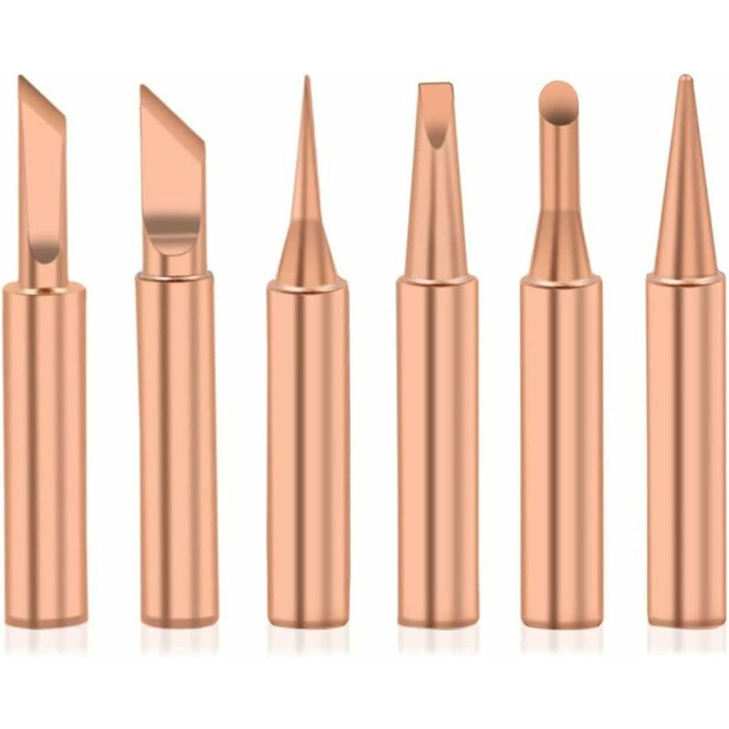 Materiale: queste punte sono in rame e non elettroplaccate, facili da stagnare e diamagnetiche, adatte per saldature a bassa temperatura. Modello: 900M-TI, 900M-TK, 900M-TB, 900M-T-3C, 900M-T-2.4D, 900M-T-SK Applicazione: queste punte di saldatura sono adatte per 936 stazioni di saldatura. 6 PZ: ci sono 6 forme in totale di punte di saldatura in questo set e puoi scegliere quella adatta per le diverse esigenze di saldatura. Nota: prova a stagnare la punta mentre si sta riscaldando. Se lo lasci acceso troppo a lungo o lo riscaldi troppo, brucerà la saldatura e diventerà nero. Caratteristiche: Buona qualità: questi suggerimenti sono realizzati in rame puro, buone prestazioni, lunga durata e durevole. Buone prestazioni: con rame puro, stagno facile da appendere, buona capacità diamagnetica Applicazione: adatto per la maggior parte delle stazioni di saldatura e per la maggior parte dei saldatori Senza piombo e rispettoso dell'ambiente Nessun piombo per la tua salute, punte di ricambio per