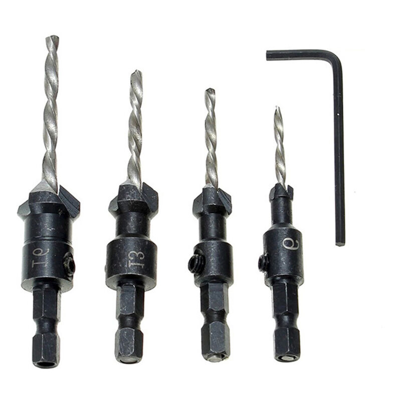 punta conica a testa svasata. Gambo: gambo esagonale. Peso del sacchetto di plastica (chiave inclusa): 86 grammi. Materiale: punta da trapano (conicità nucleo) è realizzato in HSS4241 e lo smusso nero è in acciaio al carbonio. Specifiche: Specifiche delle punte svasate Diametro della punta corrispondente (nucleo del trapano) 6#: 3 mm 10#: 3,5 mm 13#: 4 mm 16#: 4,5 mm