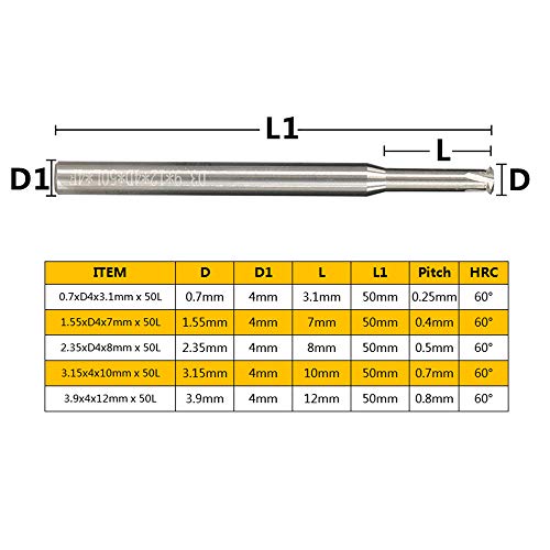Set Punte Per Trapani P0.25-P0.8 Fresa A Filettatura Singola Con Codolo Da 4 Mm Fresa A Codolo Cilindrico Con Fresa In Metallo Duro D0.7/1.55/2.35/3.15/3.9 Frese A Filetto-P0.4X1.55Xd4X7X50L - 1 Pz
