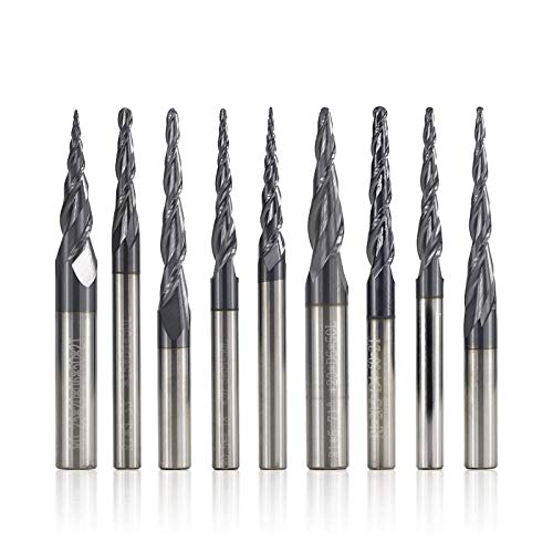 Set Punte Per Trapani 1Pc Tiain Coated R0.25/0.5/0.75/1.0/1.5/2.0 2 Flute Tapered Ball Nose End Mill Carbide Wood Engraving Bit Cnc End Milling Cutter-R0.75Xd6X30.5X75L-1Pcs