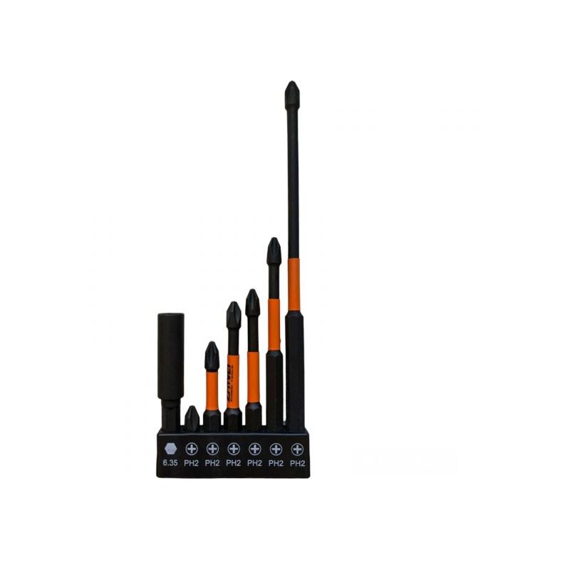 Il set di punte per cacciavite Phillips magnetiche antiscivolo è ampiamente utilizzato, adatto per montaggio e smontaggio, fai da te, cantiere, uso industriale, riparazione di mobili, riparazione di automobili, biciclette. Le punte per cacciavite Phillips magnetiche antiscivolo sono abbastanza resistenti per resistere all'uso industriale, sono realizzate in acciaio S2 ad alta durezza, sono resistenti all'usura e alla ruggine. Misure: PH2 - 50 mm PH2 - 65 mm PH2- 70 mm PH2 - 90 mm PH2 - 150 mm Porta inserti magnetico 6.35mm - 60mm