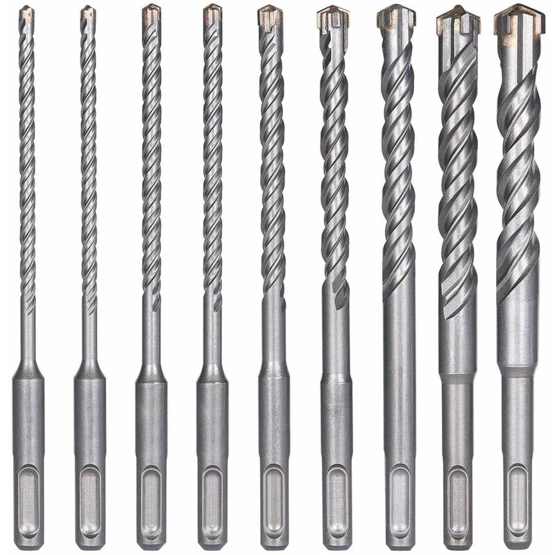 La profondità di foratura è di 100 mm. Con esso, puoi praticare tutti i comuni fori per tasselli. PUNTE IN CARBURO: Il set di punte è realizzato in acciaio al carburo di alta qualità, che è durevole e resistente alla ruggine. La punta del trapano con punta in carburo di tungsteno è più dura, più forte e più resistente ai carichi estremi;
