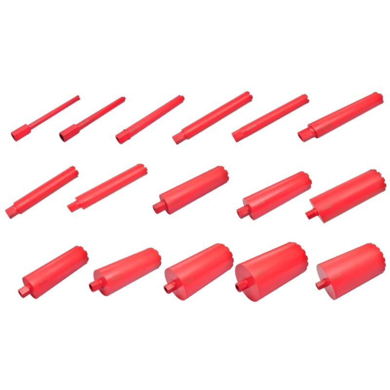Questo set Punte trapano carotiere diamantato contiene 16 pezzi di misure diverse per soddisfare diverse esigenze. Questa carotiere per trapano 26x400mm è utilissimo per la foratura di vari tipi di superficie con frese a tazza: granito, roccia, calcestruzzo, cemento armato o altre superfici dure. E' un accessorio resistente e capace di garantire i migliori risultati operativi. La fornitura include 16 pezzi di punte trapano carotiere diamantato di misure: Ø 26 mm, Ø 32 mm, Ø 44 mm, Ø 50 mm, Ø 63 mm, Ø 71 mm, Ø 82 mm, Ø 102 mm, Ø 110 mm, Ø 120 mm, Ø 132 mm, Ø 150 mm, Ø 180 mm, Ø 202 mm, Ø 220 mm und Ø 244 mm Diametro: Ø 26 mm, Ø 32 mm, Ø 44 mm, Ø 50 mm, Ø 63 mm, Ø 71 mm, Ø 82 mm, Ø 102 mm, Ø 110 mm, Ø 120 mm, Ø 132 mm, Ø 150 mm, Ø 180 mm, Ø 202 mm, Ø 220 mm und Ø 244 mm Altezza segmento: 7 mm Lunghezza: 400 mm Connessione di filo: 1 1/4”