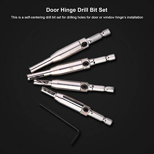 Punte da trapano per cerniere per porte - Set di punte da trapano autocentranti con codolo esagonale da 4 pezzi per porte e finestre Cerniera per foratura Strumento per la lavorazione del legno