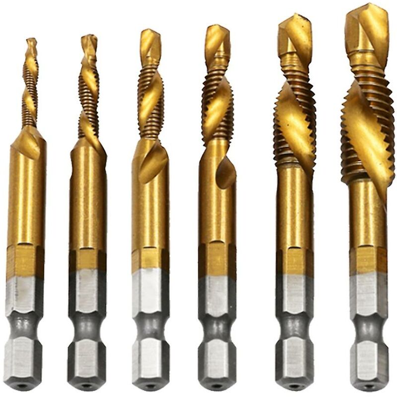 Caratteristiche: Pacchetto incluso: 6 x 3 in 1 rubinetti, M3 x 0,5 M4 x 0,7 M5 x 0,8 M6 x 1 M8 x 1,25 M10 x 1,5 Materiale durevole: HSS4341 (acciaio ad alta velocità) per capacità e durata. Ideale per: applicazioni di foratura, maschiatura e sbavatura/svasatura su legno, rame, ottone, ecc. Garanzia: in caso di problemi, contattare tempestivamente il nostro negozio. Ti forniremo una soluzione soddisfacente. Specifiche: Articolo: punte da trapano per maschiatura M3-M10 Materiale principale: HSS4341 (acciaio ad alta velocità) Colore principale: Oro Dimensioni: M3: Diametro 3 mm;