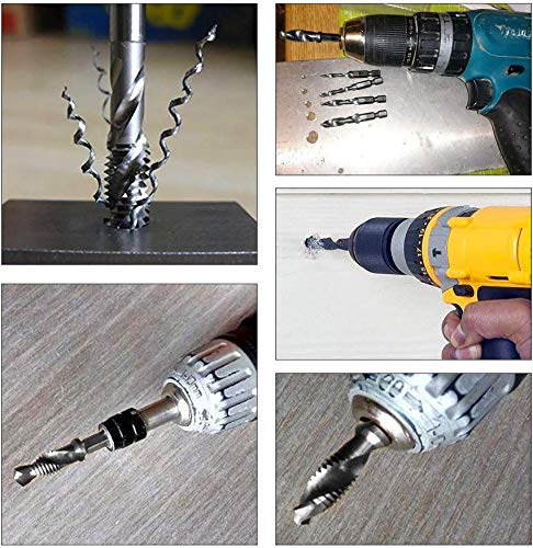 Set di punte per trapano combinate, 6 pezzi, 1/4", HSS M3-M10, con attacco esagonale per legno, plastica, alluminio sottile, non per metalli duri (filettatura metrica)