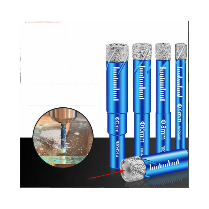 Set di punte diamantate a secco Lytool da 6 pezzi - Punte per carburatore da 5, 6, 8, 10, 12 mm e 6 mm. Ideale per praticare fori puliti in materiali duri. < p> Griglia diamantata di alta qualità e resistente alle alte temperature per un rifiuto efficace. Riempito con cera di raffreddamento, adatto per foraggi secchi. Non è necessario il raffreddamento quando lo si desidera, poiché le frese sono dotate di cera di raffreddamento all'interno. Tuttavia, può aumentare la durata delle punte. Punte diamantate professionali per forare porcellana, vetro, piastrelle e piatti in ceramica dura, porcellana ceramica, granito marmo, quarzo, pietra calcarea, fibra di vetro, terrazzo, muratura, arenaria I trapani diamantati di alta qualità e resistenti alle alte temperature ottengono un foraggio efficiente e pulito. Riempito con cera rinfrescante, adatto per resistere a secco. Tuttavia, per prolungare la durata, si consiglia di utilizzare acqua o refrigerante. Diametro: 6, 8, 10/12 mm, diametro