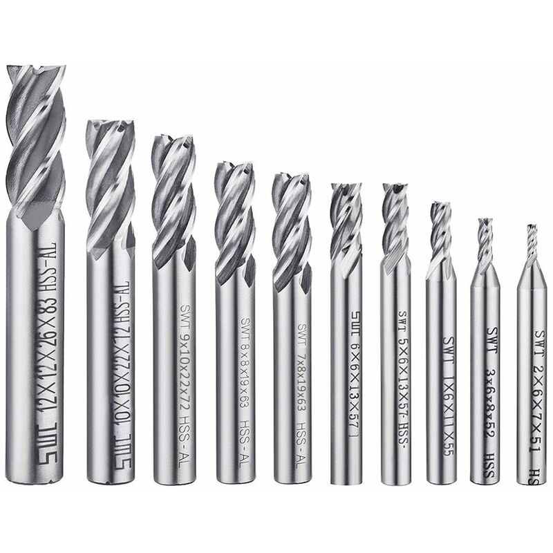 Applicazione: adatto per fresatura laterale, fresatura frontale, lavorazione di finitura in acciaio al carbonio, acciaio legato, acciaio forgiato, acciaio per utensili, ghisa e titanio . Elevata efficienza di lavorazione: il bordo della fresatura frontale è duro e affilato con rivestimento - Consente il trattamento termico di materiali ad alta produttività, riducendo i tempi di cambio e migliorando l'efficienza della produzione. Elica a forma di U - Ampio angolo frontale per ridurre efficacemente la resistenza al taglio - Affilato e forte - Ideale per truciolo evacuazione - Migliora l'efficienza di taglio della lavorazione. Materiale: acciaio ad alta velocità, elevata durezza, buona resistenza all'usura e lunga durata. 10 diversi tipi di taglierina per soddisfare le tue esigenze: 2 mm, 3 mm, 4 mm, 5 mm, 6 mm, 7 mm, 8 mm, 9 mm, 10 mm, 12 mm. Nota: - Interrompere immediatamente il trattamento di anomalie durante l'utilizzo delle punte svasatore e scoprirne il motivo prima di procedere
