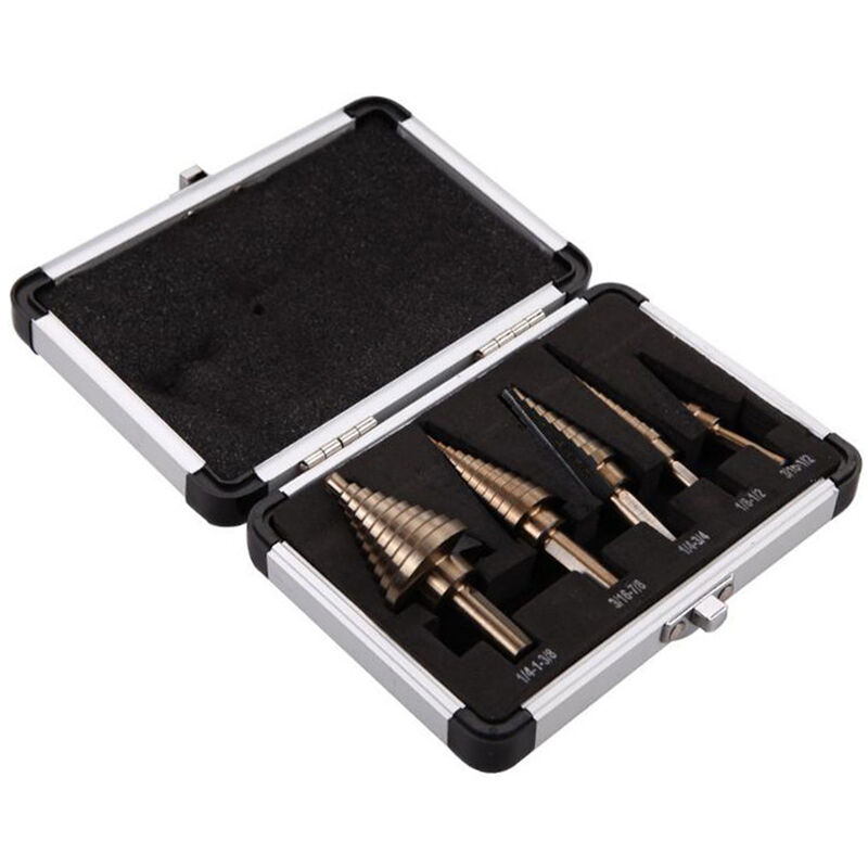 Il gambo a tre punte puo essere facilmente inserito nel motore e nel trapano. Compatibile con una varieta di macchine, utilizzate per la maggior parte dei trapani da banco, trapani elettrici manuali, trapani a batteria e altri modelli. Punte a gradini con specifiche diverse possono soddisfare diversi requisiti di perforazione. Il set con scatola in alluminio include: Bit # 1 (6 passi): 3/16 "-1/2";