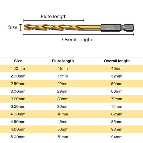 Punte Trapano Metallo Ø 1.5-5.0 Attacco Esagonale - Set Punte Trapano Cobalto con Rivestimento in Titanio - Punte Avvitatore HSSCo (M35)