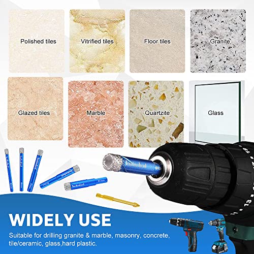Set di punte di alta qualità: il set di punte per piastrelle è realizzato in metallo duro di alta qualità ed è rivestito con diamanti con resistenza alle alte temperature, elevata durezza, affilatura e durata ed è adatto per una varietà di materiali sensibili.