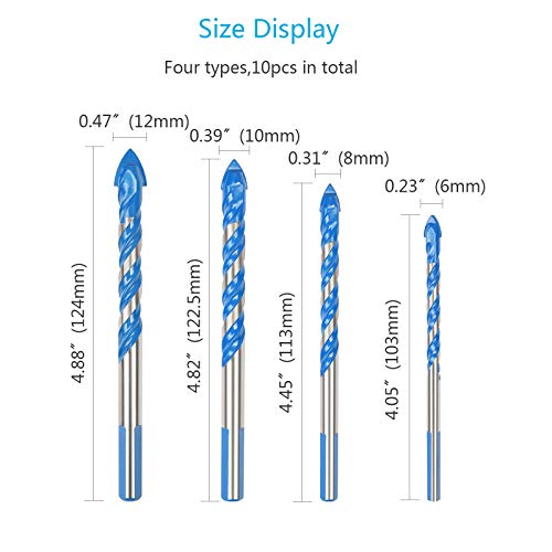 Set di punte da trapano in muratura ZoomSky 10 pezzi in metallo duro in carburo di tungsteno con punta punte in ceramica per piastrelle punte di dimensioni assortite per trapano per calcestruzzo