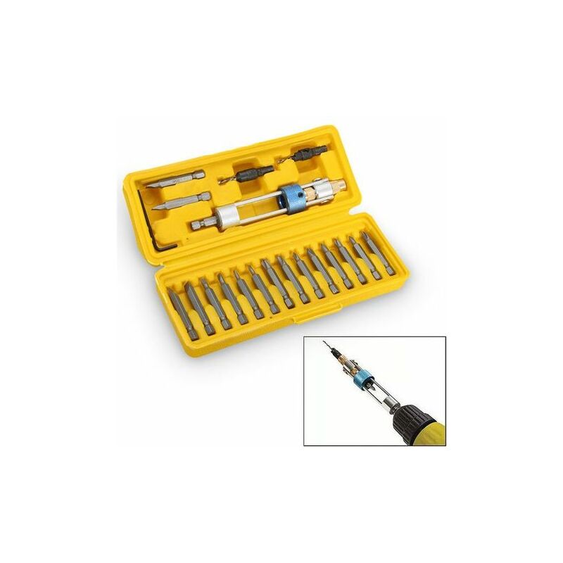 Descrizione Il pacchetto contiene: 1 trapano avvitatore X 8 punte Phillips (2 x PH0 / PH1 / PH2 / PH3) 8 punte con testa X (2 x 1/83,2 mm, 5/324 mm, 3/164,8 mm, 1/46,3 mm) 2 Xkeystroke bit (3/322,4 mm, 1/83,2 mm) 1 chiave esadecimale Caratteristiche del prodotto: - Passa facilmente da un bit all'altro in pochi secondi! - La testa girevole gira e blocca dalla perforazione alla guida - Funziona con il tuo trapano Trapano per guidare in metà tempo