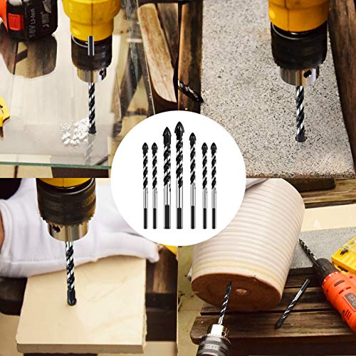 Punte da trapano 7 pezzi, SS SHOVAN Punta da trapano a spirale in lega triangolare per piastrelle in ceramica, vetro, specchi, plastica, legno, set di punte per trapano (6/6/6/6/8/10/12 mm) (Nero)