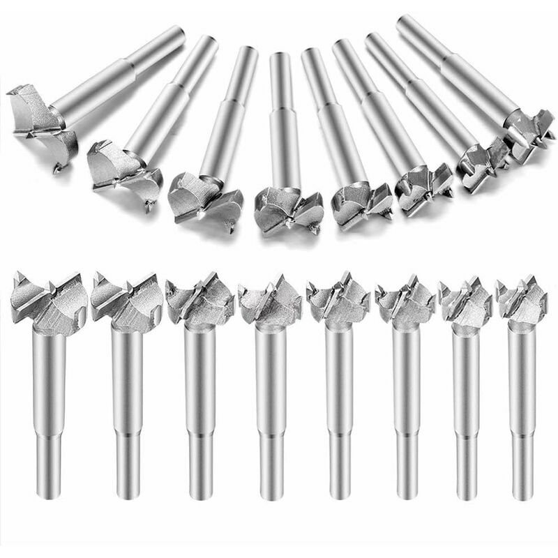 Varie punte da trapano: 15 mm/16 mm/17 mm/18 mm/19 mm/20 mm/21 mm/22 mm/23 mm/24 mm/25 mm/26 mm/28 mm/30 mm/32 mm/35 mm. I tuoi 16 bit possono essere facilmente archiviati tra un lavoro e l'altro per soddisfare le tue diverse esigenze., Acciaio legato al titanio HSS: realizzato in acciaio legato al titanio, resistente. La punta forstner in acciaio ad alta velocità esegue fori sovrapposti, fori obliqui e fori a tasca su tutti i tipi di legno, il che è comodo per praticare fori per cerniere, fori cilindrici e fori filettati di scrivanie da ufficio. ;