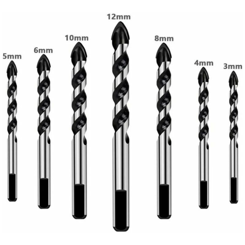 7 pezzi di trapano per piastrelle, trapano per vetro, trapano per ceramica, trapano per calcestruzzo, trapano per muratura, trapano per mattoni e set di punte diamantate (3mm 4mm 5mm 6mm 8mm 10mm 12 mm) Set di punte per laterizio, cemento, muratura, vetro, piastrelle, piastrelle, ceramica, gres porcellanato, marmo, cemento armato, pietra, muratura plastica e legno Set punte per trapani, trapani a batteria, trapani/avvitatori, trapani a batteria e per tutti i trapani Per forare materiali duri (vetro, gres porcellanato, marmo o granito), utilizzare l'eau pour la lubrification Color Descrizione del prodotto Kit di foratura per calcestruzzo,, muratura in laterizio, vetro, piastrelle, piastrelle, ceramica, gres porcellanato, marmo, cemento armato, pietra, muratura plastica e legno Set di punte per trapani, trapani a batteria, trapani/avvitatori, trapani a batteria e per tutti punte Durante la foratura di materiali duri (vetro, gres porcellanato, marmo o granito), utilizzare acqua per la