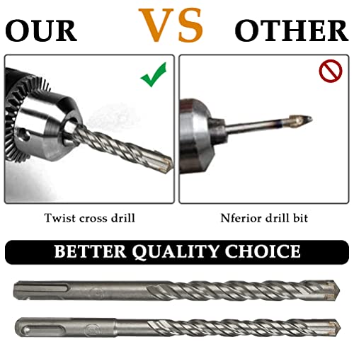 【Materiale Premium】Punte trapano sds plus muro per cemento Realizzate in acciaio cromato 40CR + lega YG8, questa punta per trapano a percussione è estremamente resistente, durevole e antiruggine. Garantisce un rapido avanzamento della perforazione con una vita utile molto lunga allo stesso tempo.