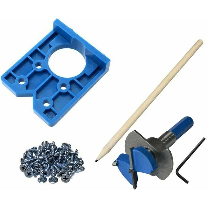 170 grammi Riferimento: Q-DC719 Batterie richieste: No Peso: 0,17 chilogrammi Disponibilità di pezzi di ricambio: Informazioni non disponibili sui pezzi di ricambio < br/> Caratteristiche: 1. Punta Forstner per pulire i fori nel legno tenero e duro. 2. La maschera di foratura Hidden Hinge è realizzata in policarbonato resistente agli urti ed è ideale per la foratura. Caratteristiche: Materiale: ABS. Diametro foro: 35 mm. Profondità del foro: 15 mm-45 mm. Diametro stelo: 8 mm. Lunghezza totale: 80 mm. Contenuto: 1 dima per forare cerniere. Istruzioni: 1. Determinare la posizione del taglio della cerniera, la tavola corta rivolta verso l'alto, la vite è fissata sul bordo della tavola, praticare il foro per la cerniera. 2. Disegna una linea centrale corrispondente sull'altra tavola, la tavola corta è rivolta verso il basso, la linea centrale è allineata con il triangolo invertito, pratica il foro di posizionamento della base della