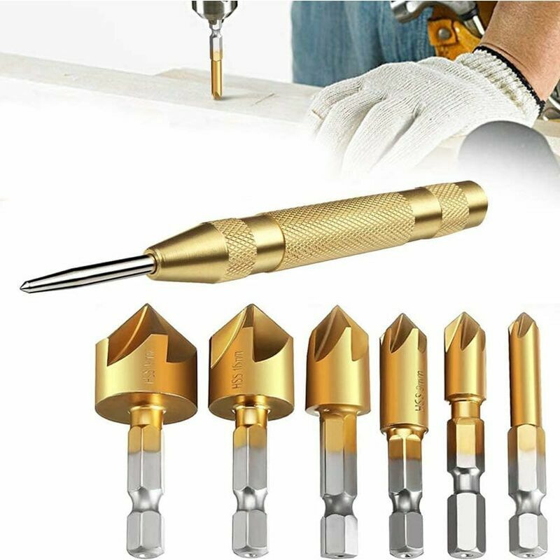 Eccellente qualità: queste punte sono realizzate con acciai ad alta velocità e sono disponibili in 6 diversi diametri da 1/4'', 5/16'', 3/8 '', 1/2' ', 5/8'', 3/4''. NOTA: abbiamo la nostra fabbrica per produrre questa punta e possiamo offrire la migliore e pronta risposta a qualsiasi problema o domanda tu abbia.,Design perfetto: smussatura a cinque lame con scanalatura, detriti più facili da scaricare e punta in acciaio ad alto tenore di carbonio. la punta non è facile da smussare. Le frese con codolo esagonale da 1/4" sono adatte per trapani veloci e non scivolano nei mandrini. Elimina sbavature e vibrazioni: tutte hanno angoli di 90° sul punto di fresatura preciso e preciso. Il tagliente è levigato e temprato per la nitidezza.Un design senza sbavature a cinque denti con denti di taglio sfalsati contribuisce al libero flusso di trucioli e al taglio rapido senza vibrazioni.,Ampia applicazione: ideale per aperture per la lavorazione del legno, alesatura, smussatura e così via. Si