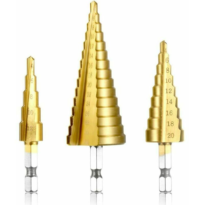 Questa punta da trapano è il nuovo set di punte da trapano a cono a passo largo in acciaio HSS con foro in titanio, realizzato in acciaio HSS di alta qualità e con rivestimento in titanio per ridurre l'attrito e il calore. È molto adatto per praticare fori in un varietà di materiali tra cui acciaio, ottone, legno, plastica, ecc. Prodotto in acciaio ad alta velocità M42 con rivestimento in titanio per ridurre l'attrito e il calore. Non sono necessari fori pilota o preforatura. Sbava automaticamente i fori durante la perforazione. Ideale per metalli sottili, acciaio, alluminio, rame, ottone, fibra di vetro, PVC, ecc.