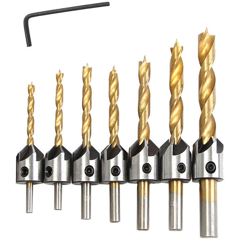 Specifiche: Materiale: lega dura Colore: oro Diametro: 3/4/5/6/ 7/8/10 mm Dimensioni confezione: 14 * 10 * 2 cm / 5,5 * 3,9 * 0,8 pollici Peso confezione: 255 g / 9 once Elenco dei pacchetti: 6 * Set di punte per svasatore 1 * Chiave inglese
