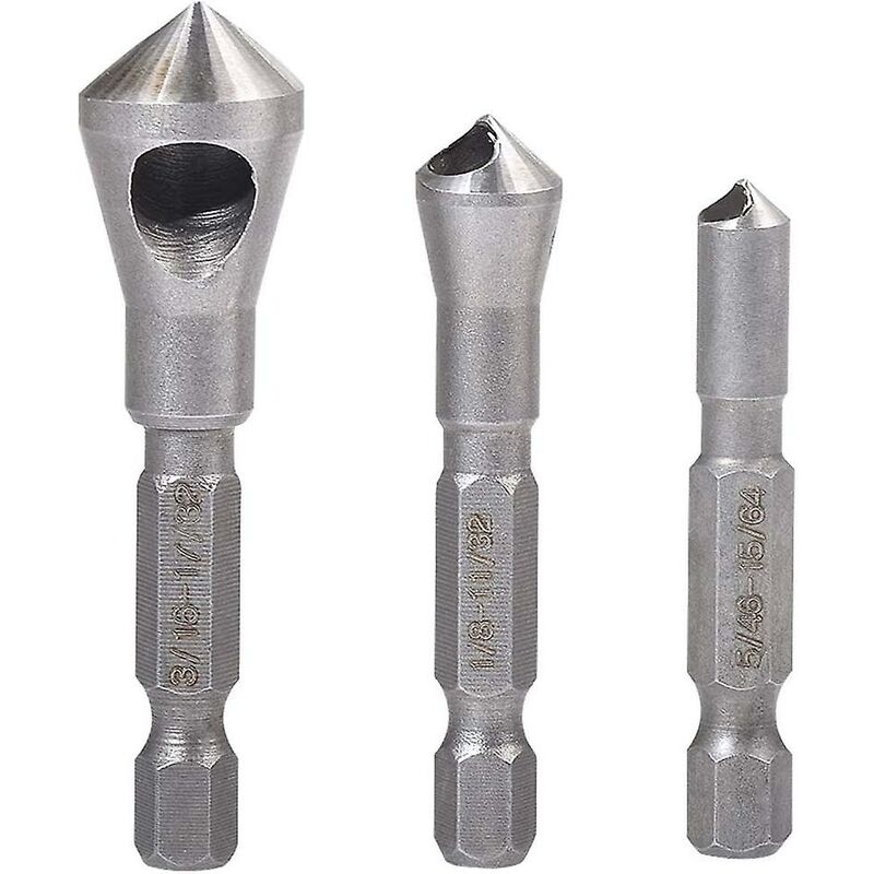 Taper Cutter Strumento per sbavare il legno Punte da trapano con codolo esagonale 1/4 Punta da trapano per la lavorazione del legno con smusso in metallo 5/64 1/8 3/16, Confezione da 3 Specifiche: 3-16-17/32, 1/8- 11/32, 5/65-15/64 Attacco esagonale standard da 1/4 a cambio rapido;
