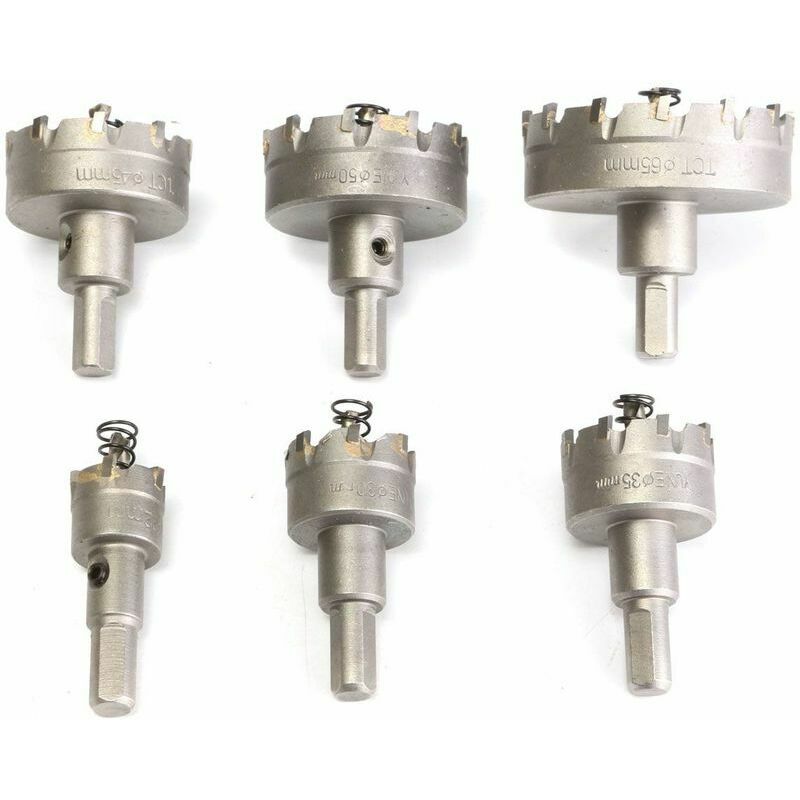 Contenuto della confezione: Punta da trapano in carburo sega punta TCT 6 pezzi Caratteristiche: Materiale: carburo e acciaio legato Diametro: 22 - 65 mm (22 mm 30 mm 35 mm 45 mm 50 mm 65 mm) Lunghezza totale: circa 68 mm Diametro dello stelo: circa 9 mm Quantità: 1 set (6 pezzi) Caratteristiche: 100% nuovo e di alta qualità. Realizzata in lega di acciaio di alta qualità, la lama è estremamente affilata e resistente al taglio. Buona capacità di punzonatura. Lunghezza effettiva di 20 mm, in grado di gestire lastre di acciaio spesse e punzonatura di materiali metallici a pareti spesse. Quando si tagliano materiali raffreddati, il tagliente deve riempire il refrigerante. Può essere fissato su trapano a mano e trapano da banco, può essere utilizzato per acciaio pesante, ghisa, acciaio inossidabile, piastre angolari e angolari non standard;