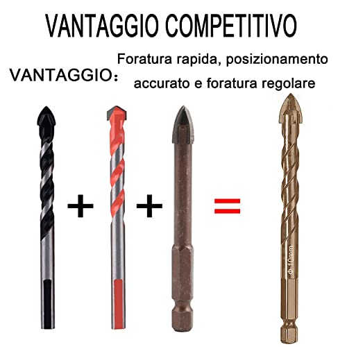 Ampia gamma di applicazioni: le punte sono progettate per penetrare agevolmente in un'ampia gamma di materiali, perforando con facilità piastrelle, cemento, mattoni, vetro, ceramica, plastica, legno o altri materiali.