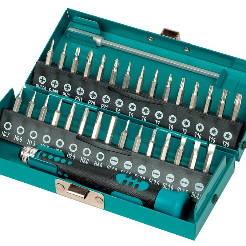 Set di punte e micro-bit da 32 pezzi. Per tutti i tipi di lavori e aree difficili da raggiungere. Caratteristiche tecniche: Vengono in una custodia di metallo . Include asta di prolunga