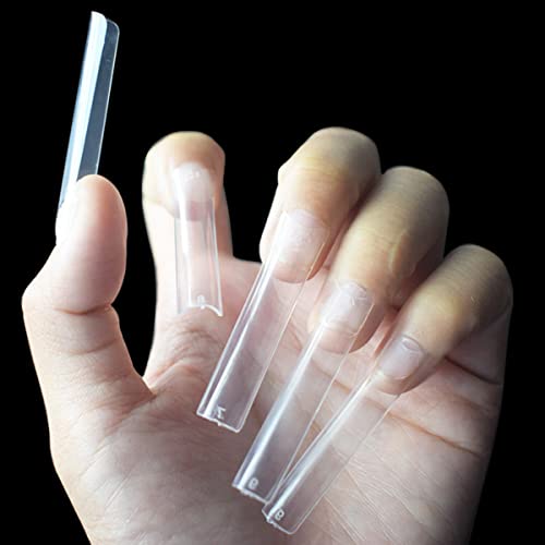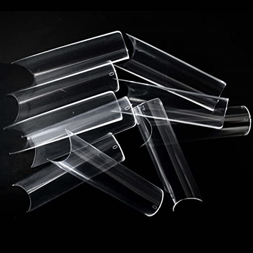 Punte per unghie finte in acrilico trasparente, curva a C, XXL, con copertura totale extra lunga, dritta, per nail art e nail art fai da te, 500 pezzi, 10 misure