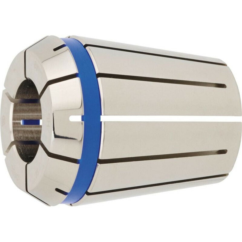 Morsetto di precisione GERC32-HP / 470E - DIN ISO 15488-B (vecchia DIN 6499) - Precisione media del sistema di 3 µm (a distanza 3 x D max. 50 mm) in mandrini a pinza di precisione - Con rivestimento FAHRION Protect contro la corrosione - Per la gamma HSC e per risultati di lavorazione di alta precisione Nota: Nei mandrini a pinza standard hanno il normale diametro di serraggio a ponte. l'anello di identificazione blu, che non ha funzione di tenuta, deve comunque essere rimosso. In generale, tuttavia, si consiglia di utilizzare solo la dimensione nominale di serraggio.