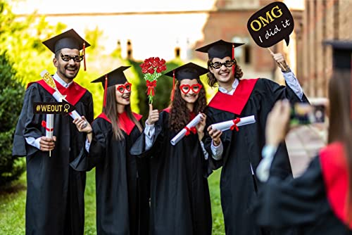 【Puntelli di laurea 2022】: il pacchetto di oggetti di scena di laurea include 31 oggetti di scena di laurea progettati diversi. I bastoncini di bambù sono inclusi, basta attaccare gli oggetti di scena sui bastoncini, creare facilmente i tuoi oggetti di scena per foto e scattare foto divertenti.