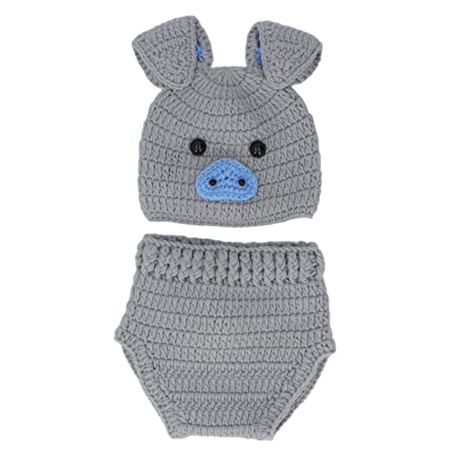 Puntelli per Fotografia per Neonati, Costume Lavorato a Maglia All'uncinetto, Cartone Animato, Animale, Cappello di Maiale, Pantaloni, Abiti per Foto per Bambini(Grigio cielo profondo)