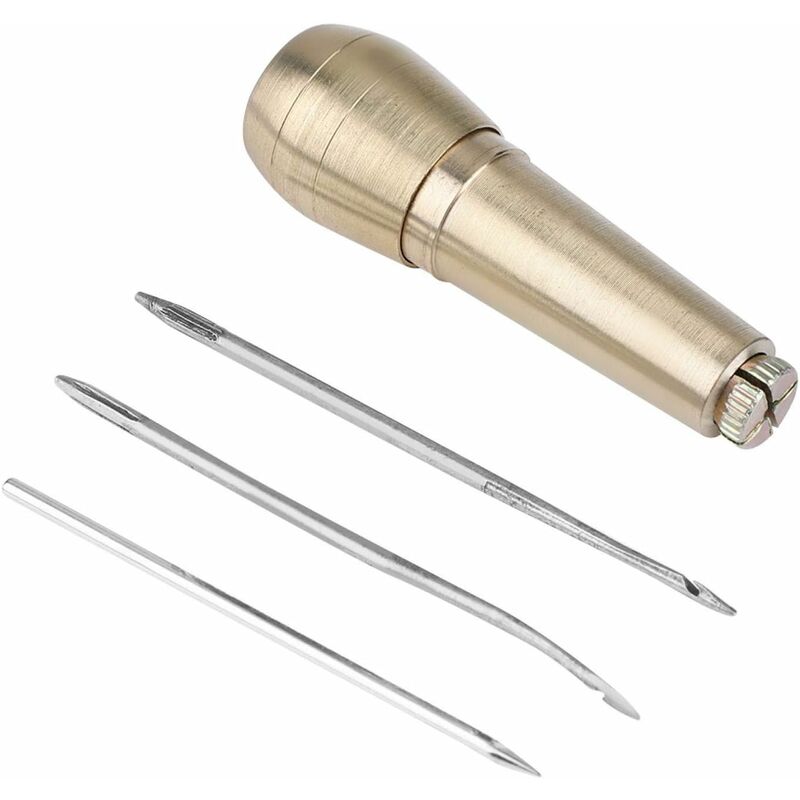 Materiale affidabile: il manico è in ottone, che è durevole da usare e morbido da impugnare, e l'ago è in metallo, che non è facile da arrugginire o deformare, ti aiuta a far fronte a tipi di lavoro di cucito, ed entrambi possono durare a lungo Semplice da usare: i nostri manici in rame sono adatti per i nostri vari tipi di aghi da cucito, devi solo ruotare l'estremità del manico per sostituire l'ago e il tutto l'operazione di sostituzione è facile senza strumenti complessi Comodo da riporre: puoi estrarre gli aghi quando non vengono utilizzati, sono leggeri e facili da riporre insieme, facili da trovare anche al prossimo utilizzo, si prega di notare che gli oggetti appuntiti li tengano lontani dai bambini piccoli Una buona scelta per cucire e riparare pelle, scarpe, borse, ecc. pMultiuso: gli aghi per cucire in pelle sono adatti per cucire oggetti in pelle, possono migliorare Grazie all'efficienza del processo di riparazione delle scarpe, sono adatte anche per cucire tende, zaini