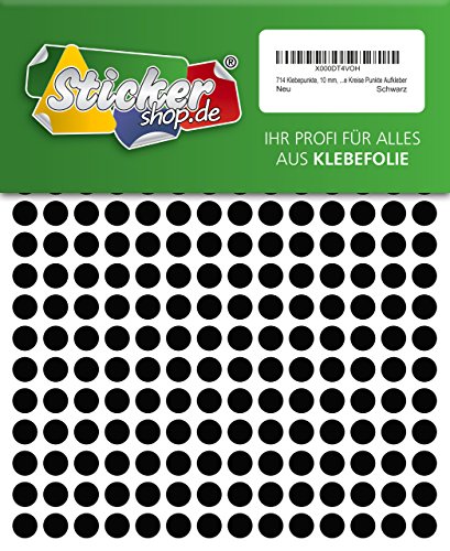 714 punti adesivi, 10 mm, nero, in pellicola PVC, resistente agli agenti atmosferici, punti di marcatura cerchi adesivi